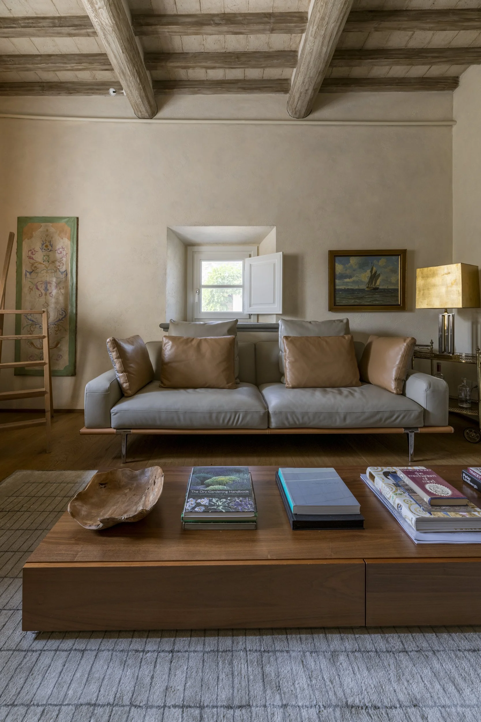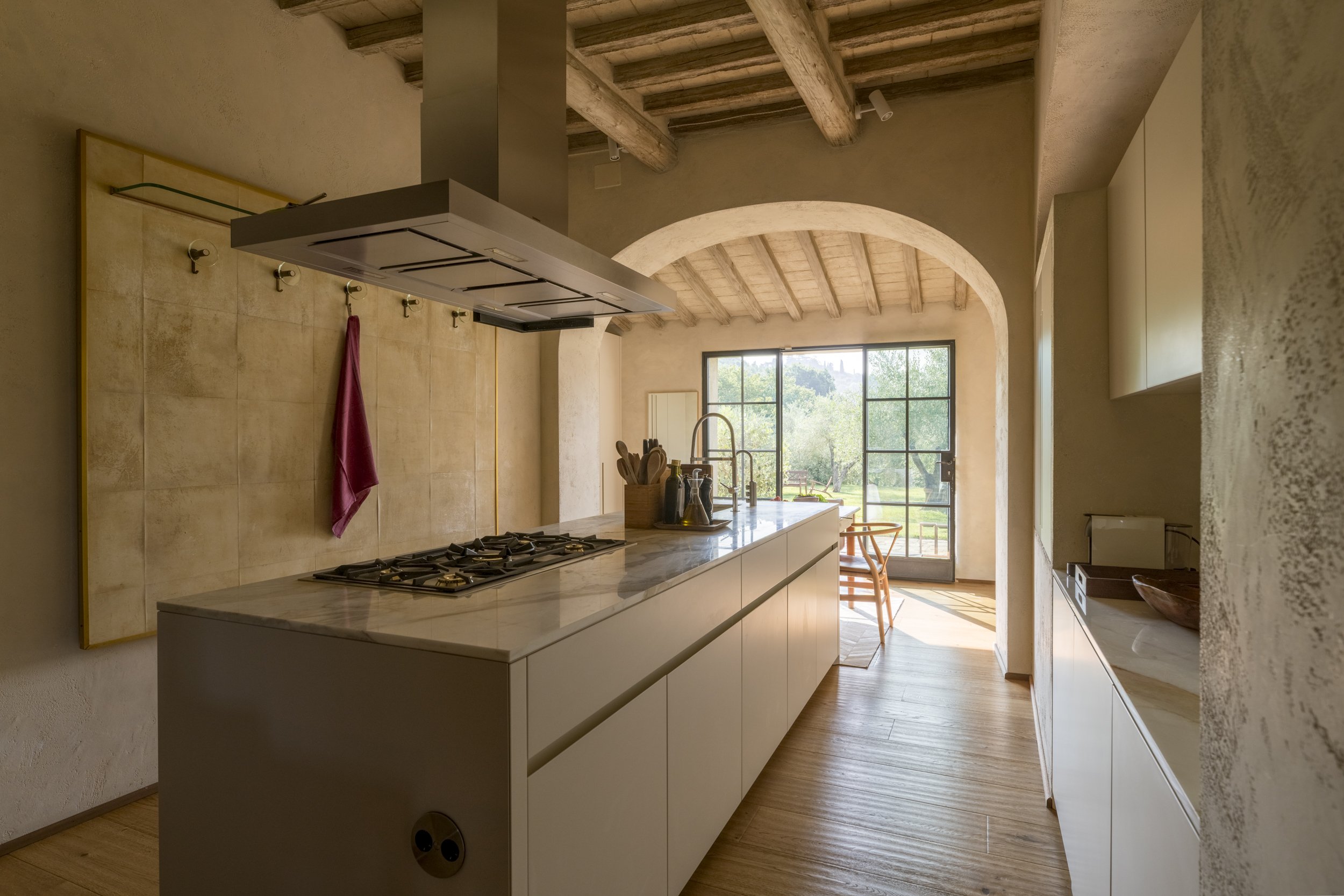 The main house on the Villa Arcetri property is a comfortable collection of airy communal spaces on the ground floor and beautifully appointed private suites atop an authentic stone staircase.