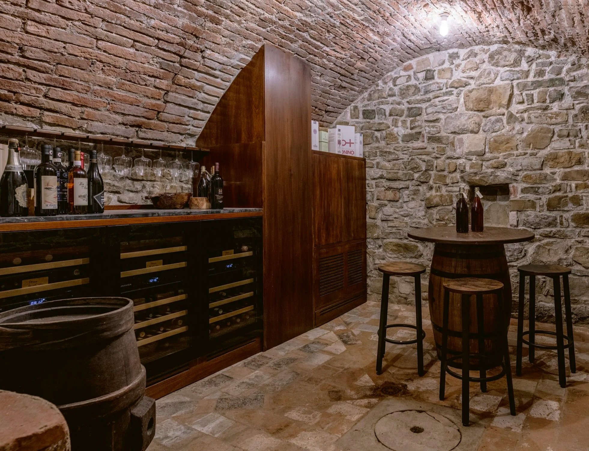 Stairs down to basement wine cellar